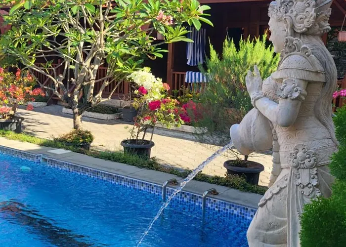 Остановившись в отеле, вы сможете познакомиться с Пляжем Дримлэнд, расположенным в 10 минутах езды, или посетить такие спортивные объекты, как Гольф-клуб New Kuta, который находится в 15 минутах езды. К тому же примерно в 4 км от отеля Uli Wood Villa, Jimbaran Bali - Near Gwk разместился Рынок Джимбарана. В 5 минутах ходьбы находятся такие достопримечательности, как Telaga Waja Rafting Bali и Главные ворота GWK. Всего в 250 метрах можно сесть на автобус на остановке Politeknik Negeri Bali south.